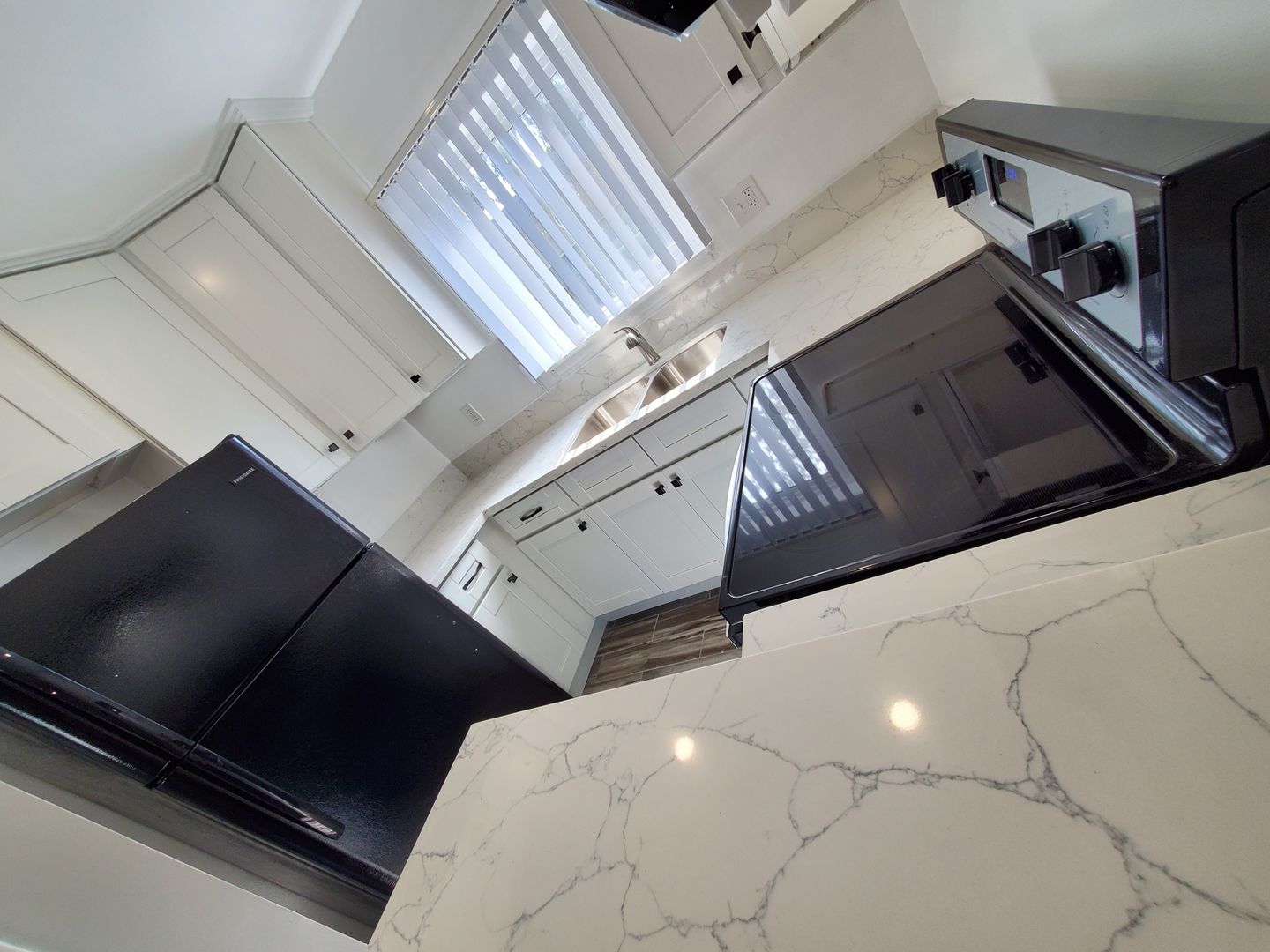 *All windows with vertical blinds.