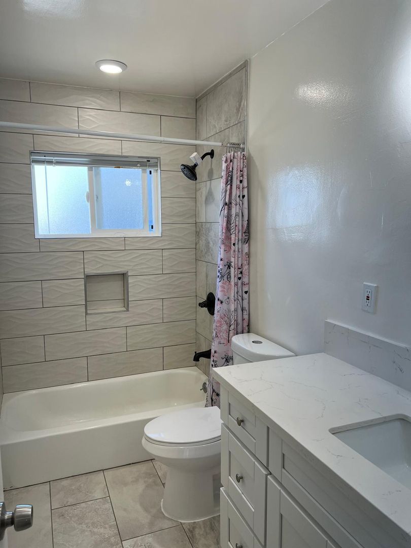 *Renovated bathroom with shower doors.